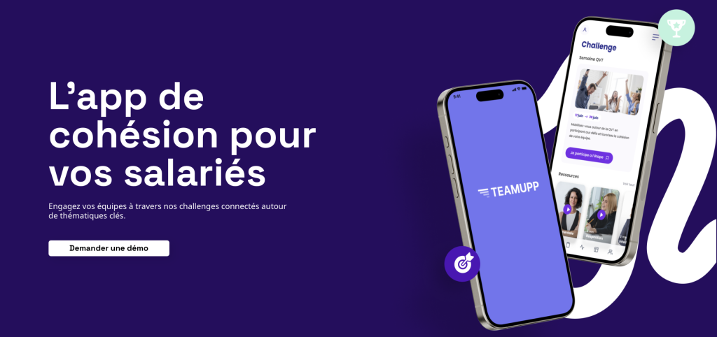 Teamupp est la première application QVT 360° en France. Elle combine une application de challenge sportif en entreprise ainsi que +40 ateliers QVT à la carte et partout en France.