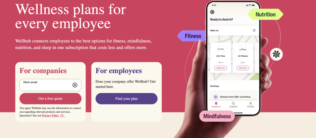 L’application propose des accès à différentes solutions de sport (cours, salles etc) pour les collaborateurs de l’entreprise.