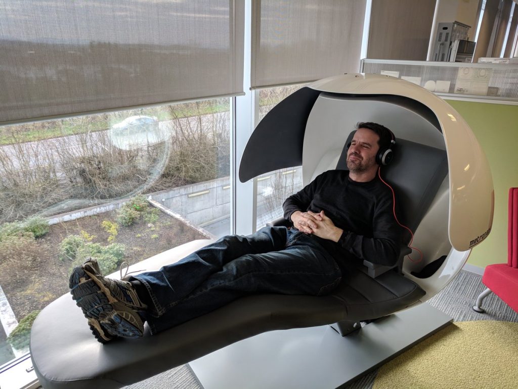 Les « Capsules de Sieste Cisco » offrent aux employés un refuge de repos équipé d’un siège confortable, d’un repose-pieds et d’un éclairage tamisé. Idéal pour une sieste de 20 à 30 minutes afin de booster vigilance et concentration !