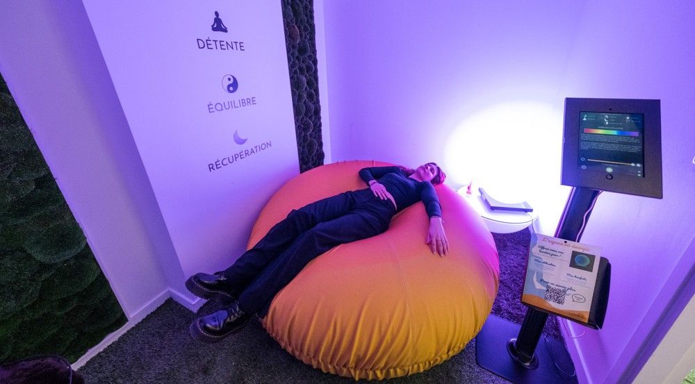 L’Oréal a créé un espace de revitalisation avec des services innovants : fauteuil de massage, respiration consciente, luminothérapie, oxygène frais et soins énergisants. Ici, la sieste n’est pas un tabou.