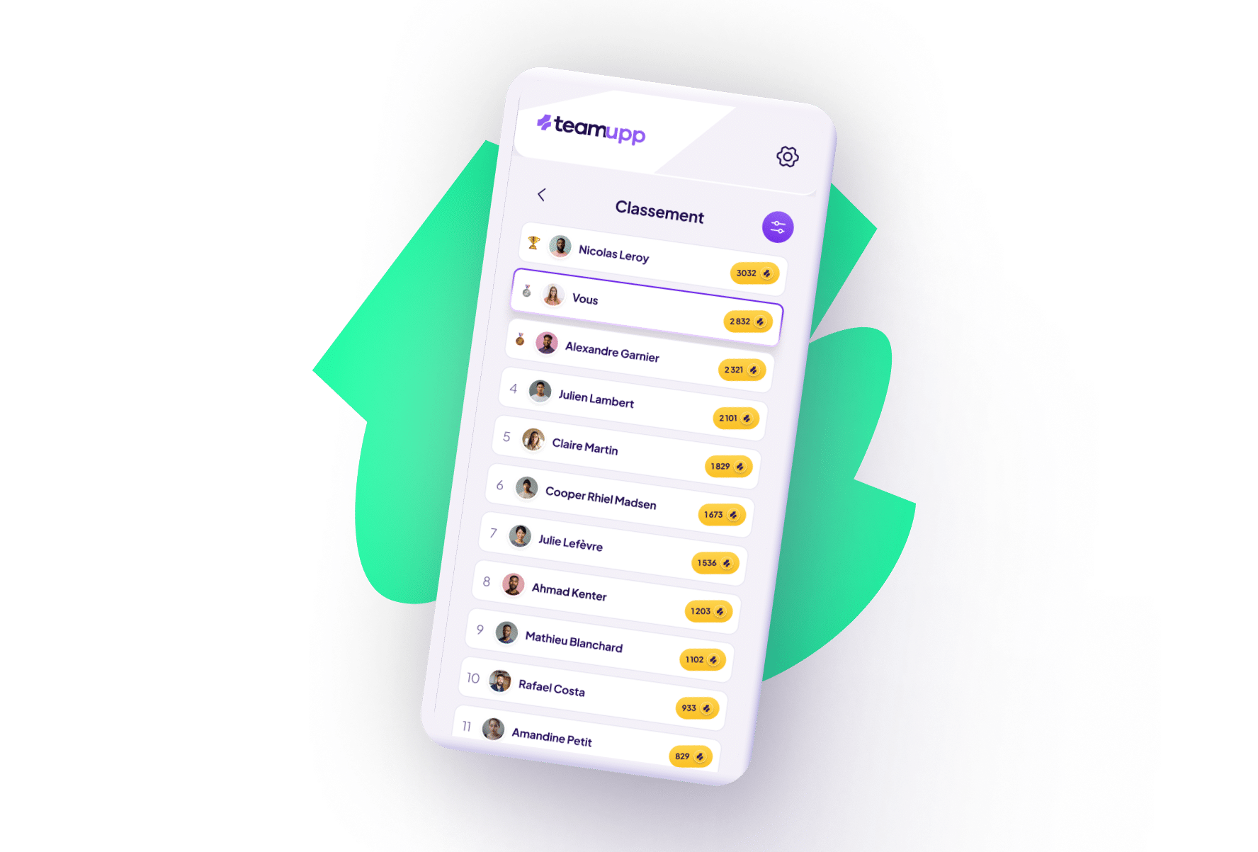 Suivez l’évolution des équipes et stimulez l’émulation grâce à des classements en temps réel, transparents et motivants.