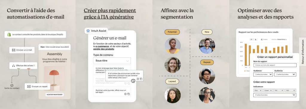 - Automatisation : Envoi d’emails personnalisés en fonction de segments ou d’événements spécifiques.