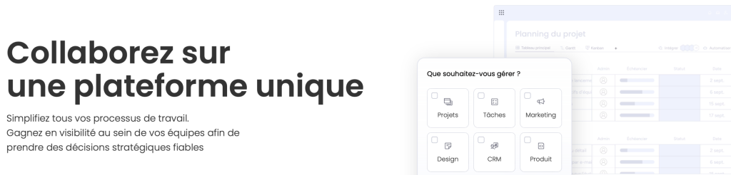 - Interface visuelle conviviale : Un tableau de bord coloré et personnalisable qui facilite le suivi des projets.