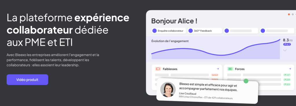 Bleexo est une plateforme dédiée à l’engagement collaborateur, qui offre un éventail d’outils pour améliorer le bien-être au travail.