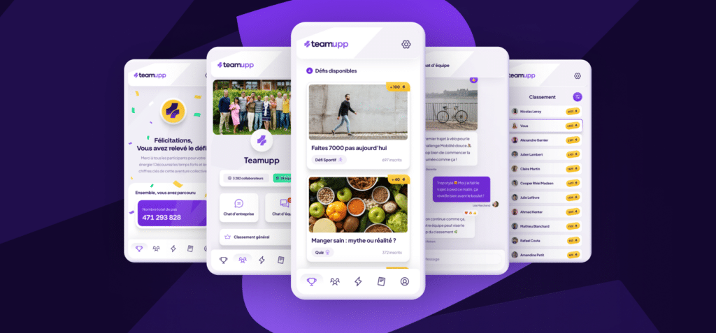 Teamupp est notre application QVT 360° ! Elle vous permet d’intégrer facilement les données d’activité physique de vos collaborateurs dans votre rapport CSRD.